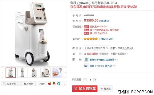 医用+保健 鱼跃家用制氧机京东售3580